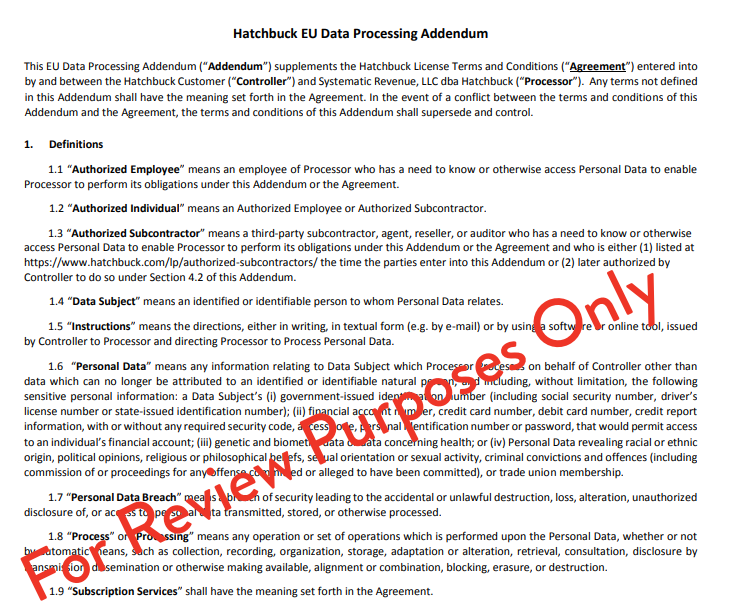 Gdpr Data Processing Agreement Hatchbuck